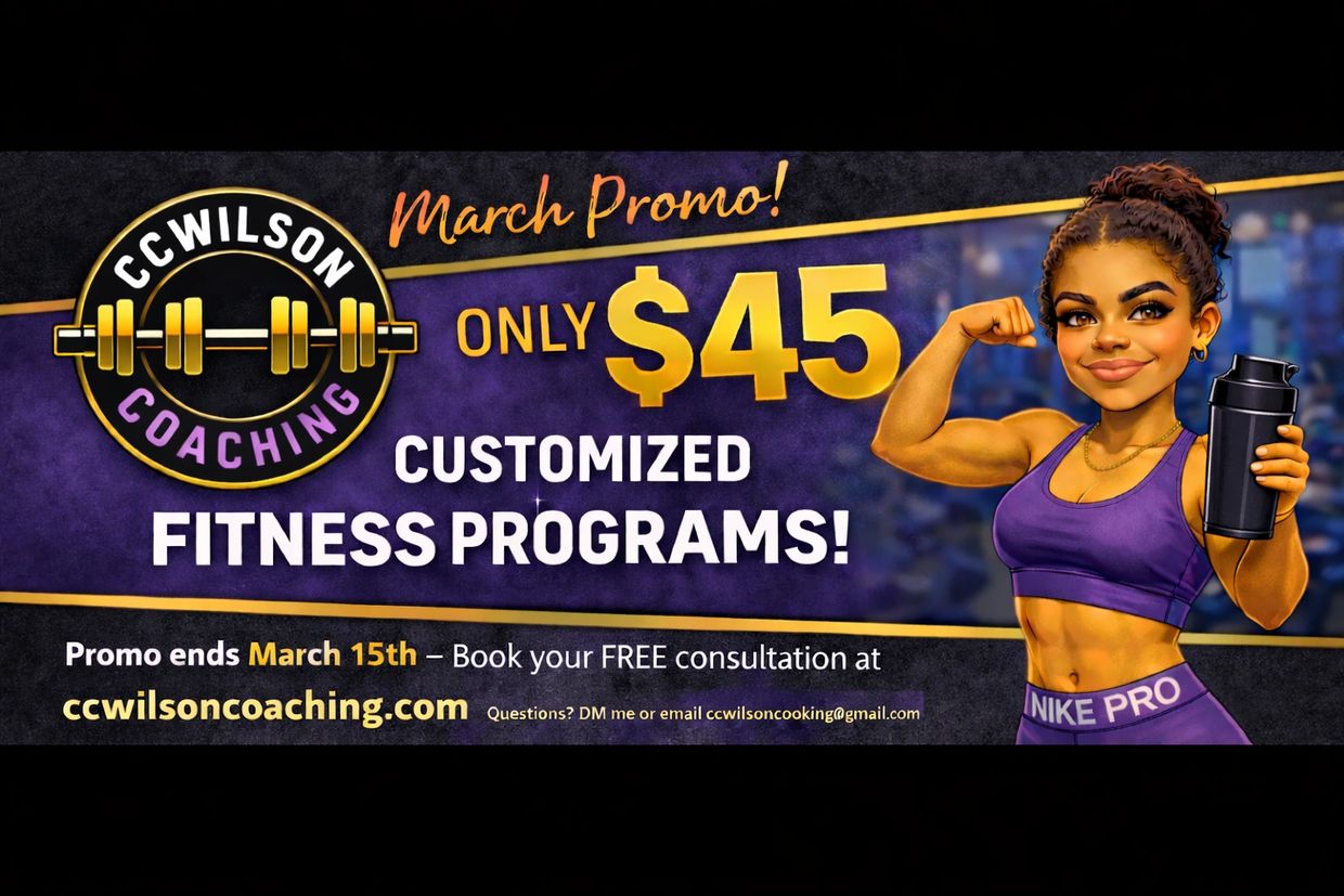 March is your time to lock in. I’m offering customized fitness programs for ONLY $45 — built for your goals and your lifestyle. This limited-time deal includes a FREE consultation and ends March 15th, so don’t wait. Book now at ccwilsoncoaching.com, and DM me or email ccwilsoncoaching@gmail.com with any questions 💜💪🔥